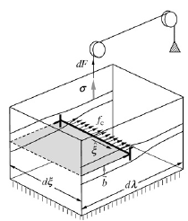 일정한 외부에서 가해준 힘 dF가 $d\xi d\lambda$ 의 면적에 가해진 상황이다.